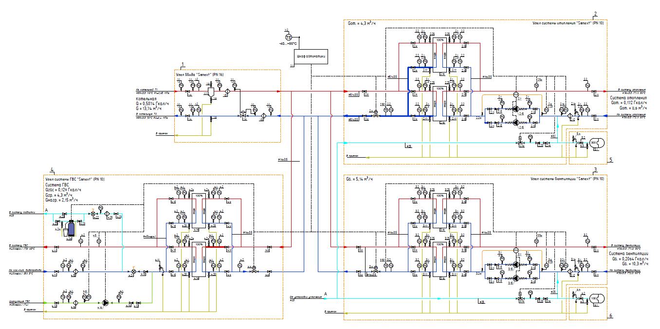 Практически все тепловые пункты имеют два и более контуров систем теплоснабжения. В нашем случае индивидуальный тепловой пункт (далее ИТП) имеет - три контура: система отопления, система горячего водоснабжения и система вентиляции: