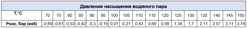 Рнас - избыточное давление насыщенных паров воды в зависимости от её температуры Т.