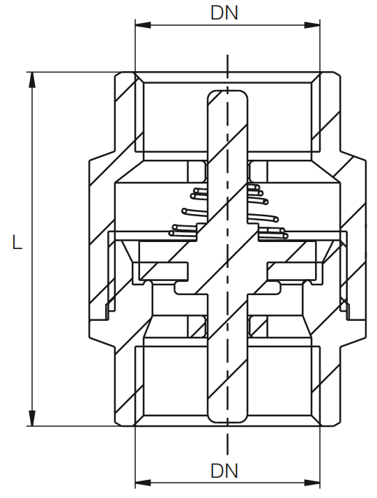 Клапан обратный пружинный муфтовый SANEXT предназначен для предотвращения обратного движения рабочей среды. Может применяться в системах водяного отопления, тепло- или холодоснабжения здания, а так же горячего и холодного водоснабжения. Клапан может использоваться на трубопроводах, транспортирующих жидкие среды, неагрессивные к материалам изделия.