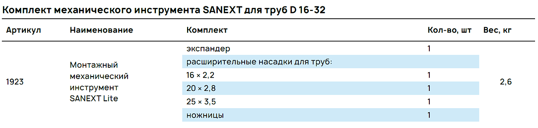 Инструмeнт ручной SANEXT Lite, комплект для труб d16-25