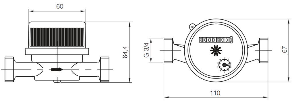 Габаритные размеры счетчиков воды SANEXT КВУ