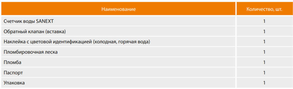 Счётчики SANEXT изготовлены из коррозионно-устойчивых материалов. Детали, соприкасающиеся с водой, производятся из материалов, не снижающих качества воды, стойких к ее воздействию в пределах рабочего диапазона температур.