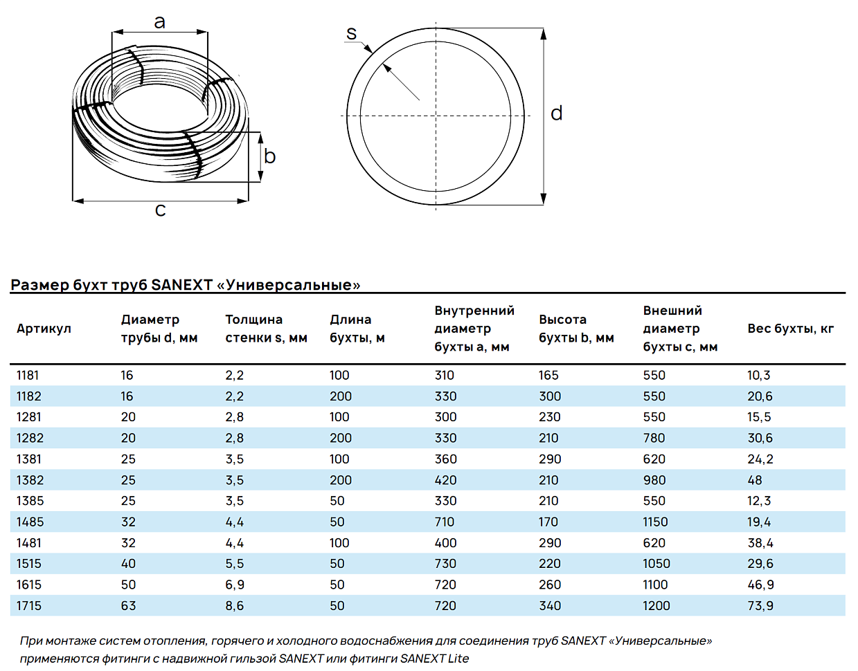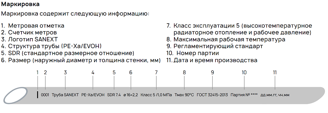 Труба SANEXT «Универсальная» предназначена для использования в системах водяного отопления, а также горячего и холодного (в т. ч. питьевого) водоснабжения. Труба изготавливается из полиэтилена PE-Xa, сшитого пероксидным