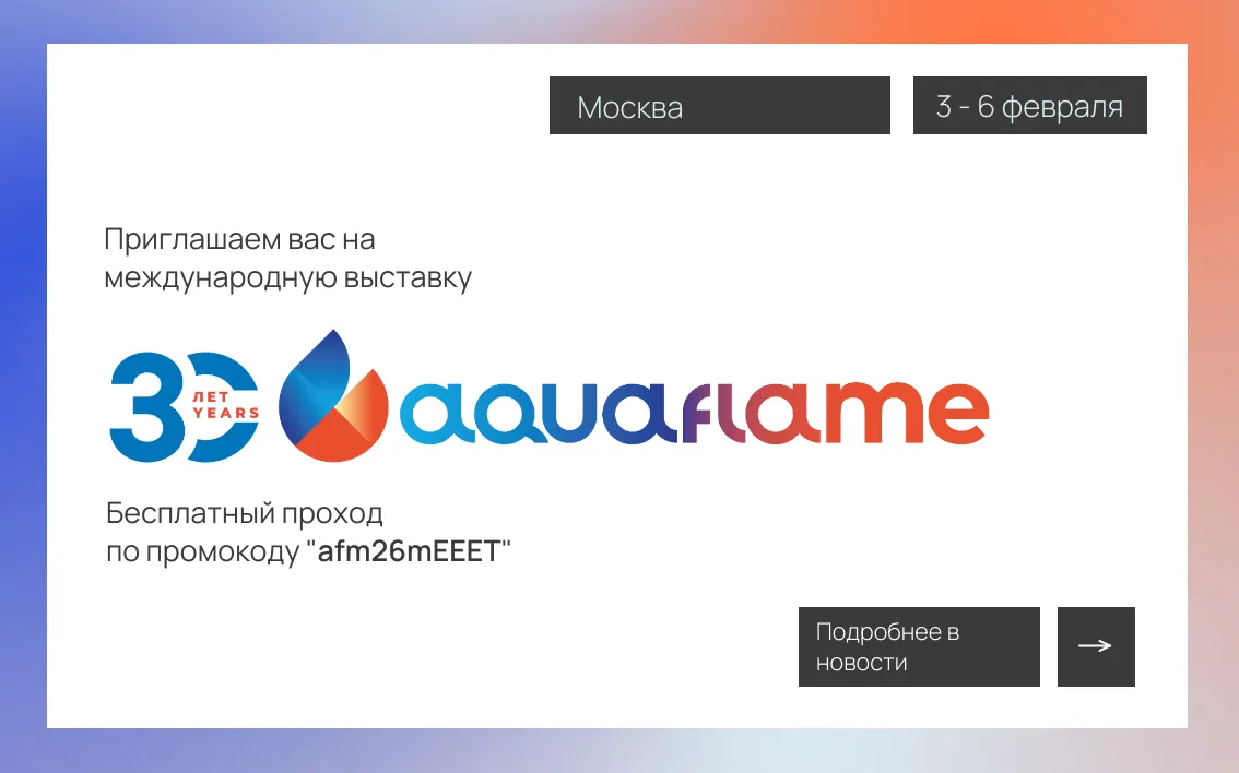 С 3 по 6 февраля 2026 года в МВЦ «Крокус Экспо» пройдет юбилейная, 30-я международная выставка Aquaflame — крупнейшее в России отраслевое событие в сфере отопления, водоснабжения, канализации и бассейнов.