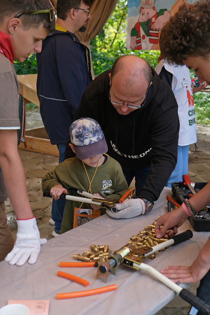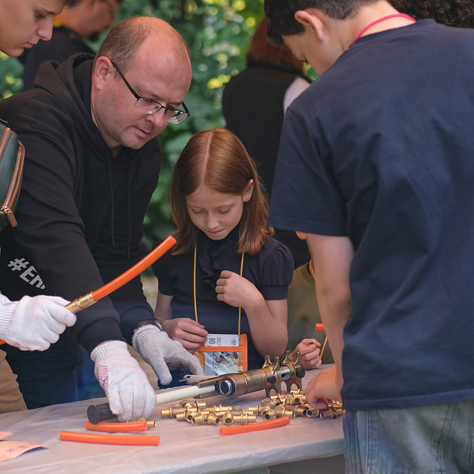 SANEXT стал частью этого важного события и подготовил профессиональную станцию, посвящённую инженерным системам. Под руководством наших специалистов ребята узнали, как устроены современные инженерные коммуникации, и даже сами попробовали смонтировать соединения фитингов с трубой с помощью специального монтажного инструмента.