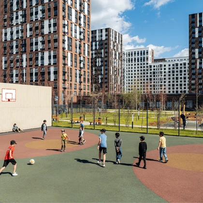 Все корпуса здесь не выше 17 этажей, а фасады — в природных оттенках: сером, коричневом, черном и белом. И вокруг только деревья: Коробовское и Богдановское лесничества занимают 140 га.